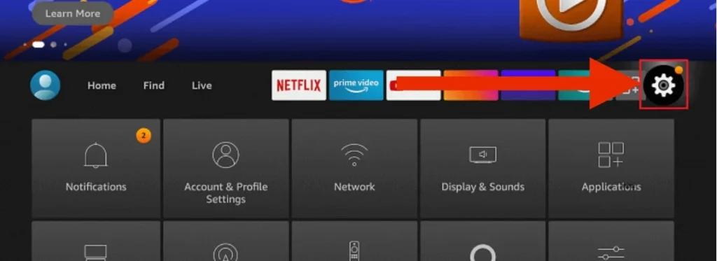 Step 1: From the home screen, select the magnifying glass icon (or “Find” for newer Firesticks) to search.