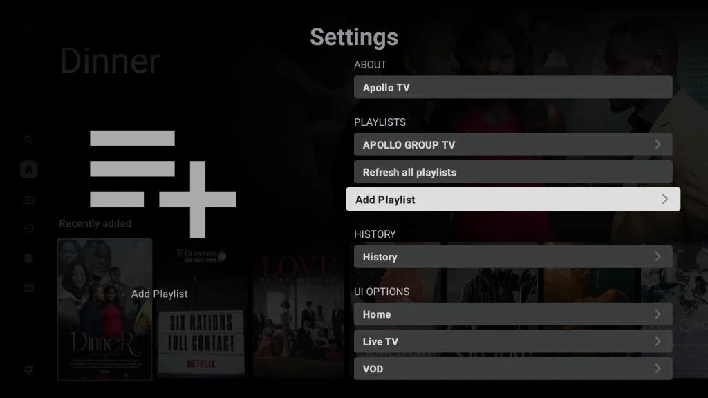 Step 5: Select “Add Playlist” and enter your Apollo Group TV username and password and select the playlist (provided in the email).